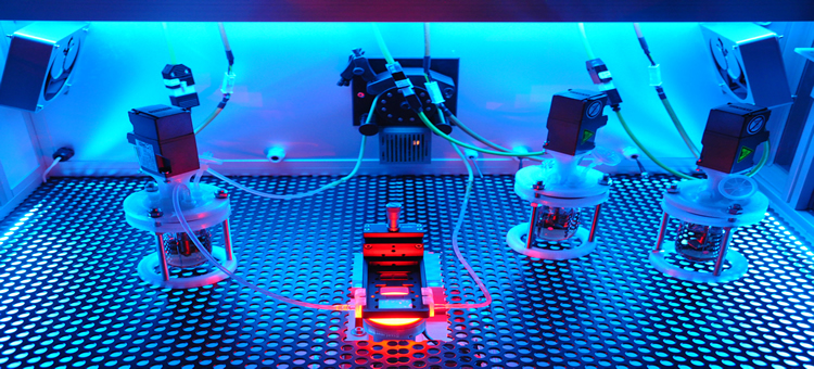 Vários tipos de biorreatores podem ser incorporados no incubador Fraunhofer TLC-RT, e o equipamento pode ser ajustado individualmente, uma opção não oferecida por incubadores convencionais.